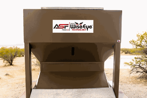 The ASF x WiseEye Feeder FEED I.D. is smartest feeder on the market! Species specific control for ASF using WiseEye cameras. Control what species are allowed to feeder from your All Seasons Feeder. Deer, Elk, Aoudad, Cows, Hogs, Blackbuck and more!